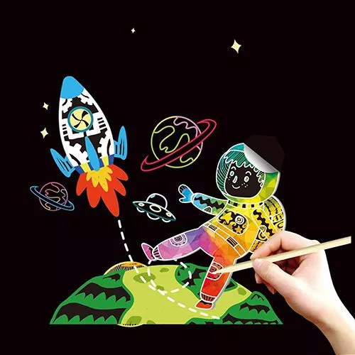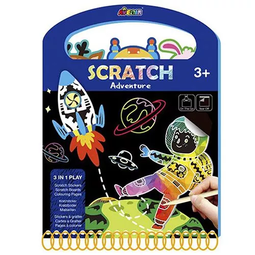 Een wonderlijke 3-in-1 krasset ‘Scratch Book – Adventure’ van het merk Avenir. Kras voorzichtig de zwarte laag weg en er verschijnt een kleurrijke print vol avontuur.