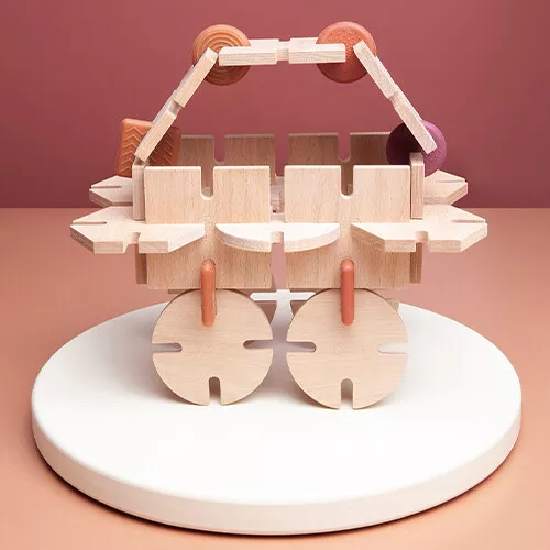 Een toren, een auto of een abstract kunstwerk; met de houten ‘Dreamer’ bouwset van het Poolse merk Bavvic zijn talloze unieke constructies te bouwen. Het open-einde-speelgoed laat kleine architecten en bouwers hun eigen fantasie volgen.