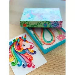 Maak mooie papieren kunstwerken met dit knutselpakket ‘Totally Magical Unicorns: Quilling Art Set’ van het Amerikaanse merk Box Candiy.