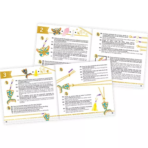 Met deze set kunnen drie kettingen en twee armbanden gemaakt worden.