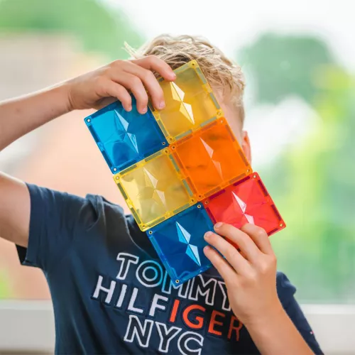 Met 100 speeltegels in regenboogkleuren ‘Coblo Classic – 100 Stuks’ van het Nederlandse merk Coblo bouwen kinderen de meest fantastische bouwwerken. De speeltegels met magnetische randen kunnen aan elkaar geklikt worden om platte en compacte kunstwerken te maken.