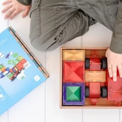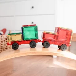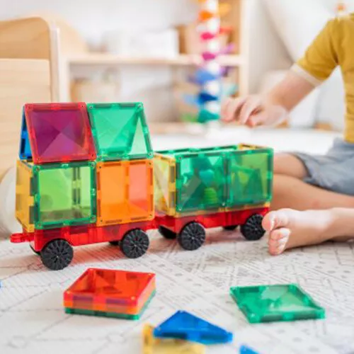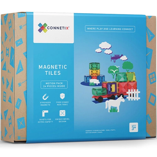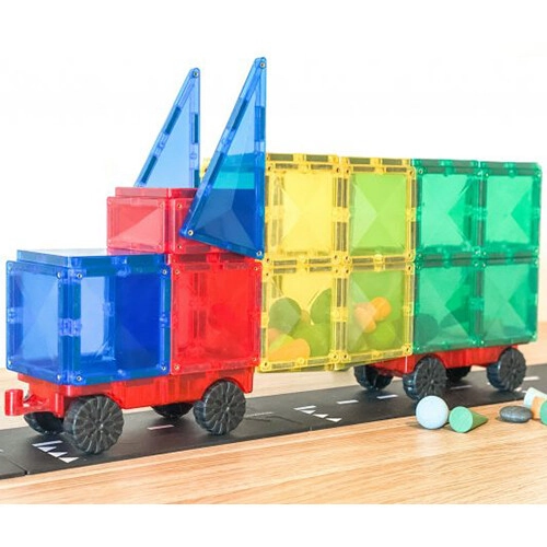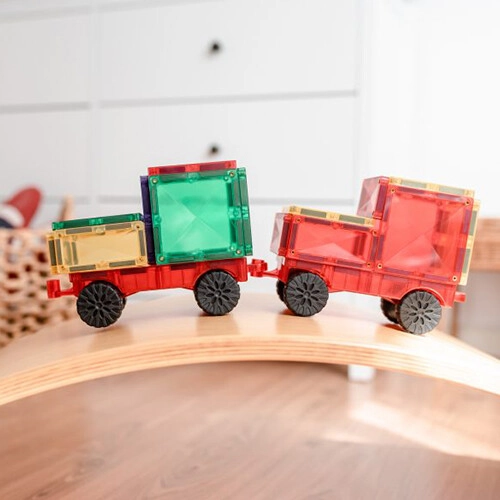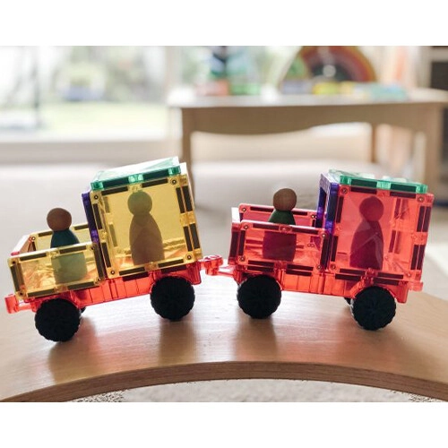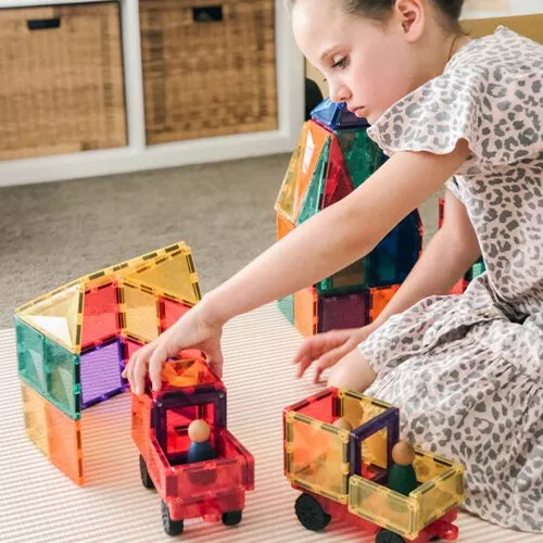 De speeltegels van Connetix hebben magnetische zijdes. Klik de magnetische speeltegels aan elkaar om verschillende voertuigen te bouwen.