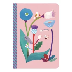 Twee handzame A6 notitieboekjes ‘Makoto Little Notebooks’ uit de lijn Lovely Paper van het Franse merk Djeco met op de voorkant fleurige illustraties van bloemen met metallic details. Eén notebook heeft blanco papier en het andere boekje is gelinieerd om te helpen bij het schrijven.