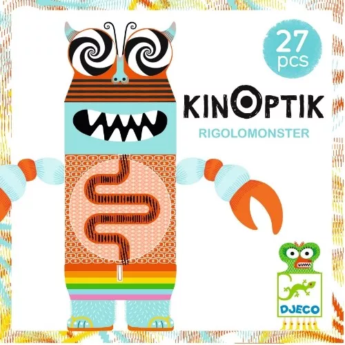 Door verschillende magneten – een hoofd, een arm, een torso – op het magneetbord te plaatsen ontstaan fantasierijke monsters. Leg vervolgens een van de twee gestreepte kijkkaarten over de monsters om grappige special effects te zien.