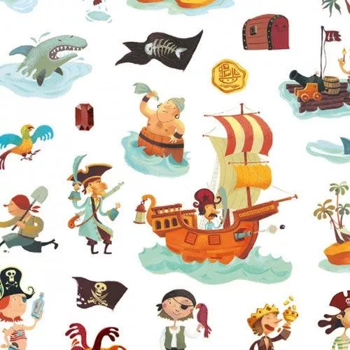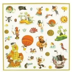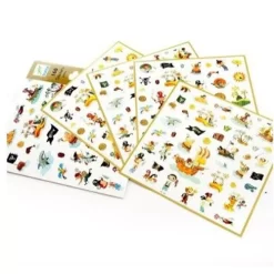 Vier velletjes met 160 olijke stickers ‘Pirates’ van het Franse merk Djeco uit het avontuurlijke piratenleven. Leuk om eindeloos schriftjes, tekeningen en agenda’s mee te versieren. Of om een grappige tekening met stickers te maken met een piratenverhaal.