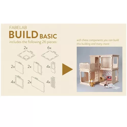 Bouw een prachtig droomhuis voor popjes met deze 26-delige set ‘Fabelab Build – Basic Kit’ van het Deense merk Fabelab. Ontworpen door Michaela Weisskirchner-Barfod.