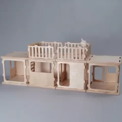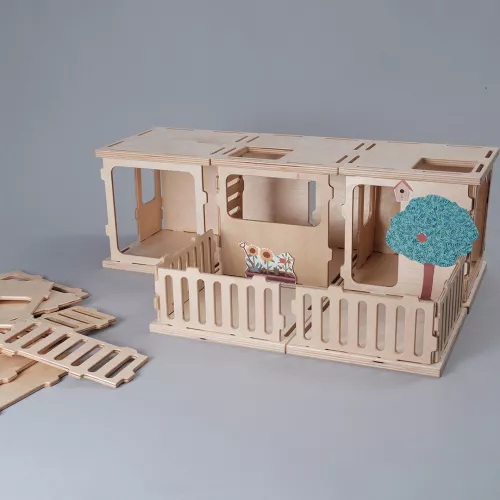 Dit poppenhuis is door kinderen eenvoudig te monteren en te demonteren en kan in verschillende manieren opgebouwd worden. Zo brengen kinderen hun ideeën tot leven kunnen en zijn ze hun eigen architect.