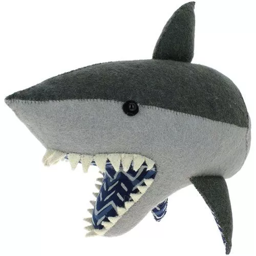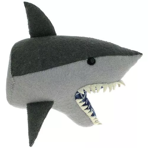 Een stoere dierenkop, ontworpen door de Engelse Fiona Walker. Deze vilten haai met zijn scherpe tanden is een geweldige eye-catcher in de kinderkamer, speelkamer of woonkamer. De materialen en het ambachtelijke handwerk drukt zich uit in een robuuste uitvoering.