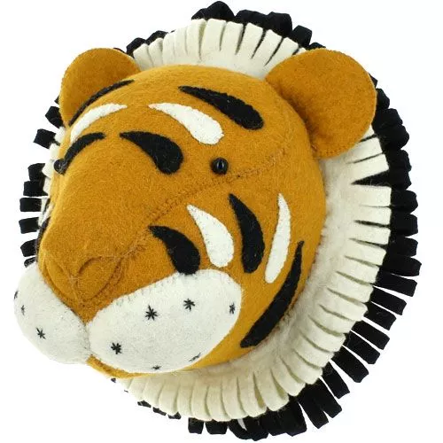 Deze vilten tijger met zijn sprekend strepenpatroon is een geweldige eye-catcher in de kinderkamer, speelkamer of woonkamer. De wanddecoratie is eenvoudig aan de muur te bevestigen met een haak aan de achterzijde.