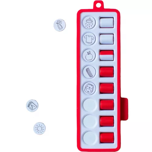 Deze rode checkpad van het Nederlandse merk Gezinnig helpt om het dagritme voor kinderen inzichtelijk te maken. De dagplanner met 54 magneetjes is een handig hulpmiddel, dat zorgt voor rust, overzicht en structuur. Ook bevordert het zelf uitvoeren van taken de zelfstandigheid.