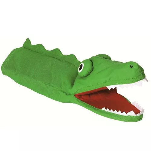 Met deze kleurrijke handpop krokodil van het Duitse merk Goki begint elk toneelstukje meteen goed. De felgroene krokodil heeft een rode bek vol scherpe witte tanden en grappige uitpuilende oogjes. Is het een hapgrage schurk of een gekke groene vriend?