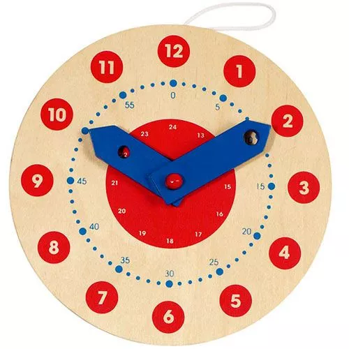 Speel en leer klok kijken met de houten klok van het merk Goki.