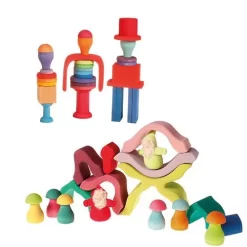Deze houten paddenstoelen van het Duitse merk Grimm’s zijn een sorteer- en bouwspel. Zoek de hoedjes van de pastel paddenstoelen bij de steeltjes op basis van kleur of combineer ze met elkaar. De houten, organische vormpjes passen mooi bij de verschillende bouwsets van Grimm’s!