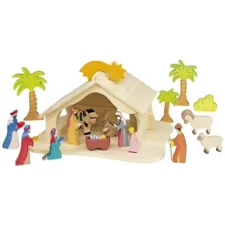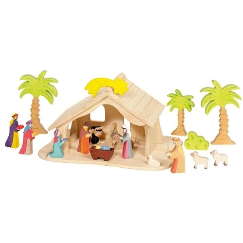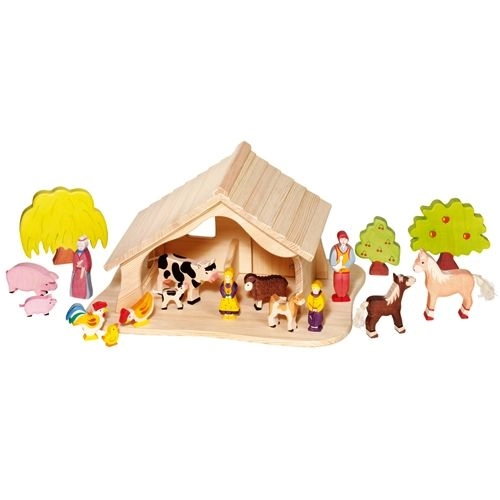 Een houten speelgoedstal uit de boerderij serie van het Duitse merk Holztiger. Met de bijgeleverde kerstster kan deze speelboerderij tevens perfect dienst doen als kerststal. De speelboerderij van onbewerkt hout bestaat uit losse onderdelen die in elkaar moeten worden gezet. De achterdeur kan open en dicht.
