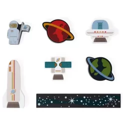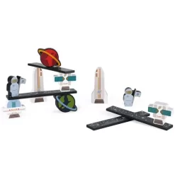 Dit spannende stapelspel ‘Balans in de ruimte’ van het Franse merk Janod vergt aandacht en geduld. De astronauten, satellieten en raketten proberen allemaal zo hoog mogelijk in de ruimte te komen en tegelijkertijd perfect in balans te blijven.