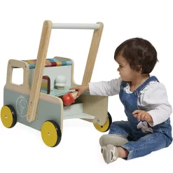 Kinderen gaan op ontdekking en oefenen zelfstandig de eerste stapjes met deze houten loopwagen van het Franse merk Janod. De stabiele ijscokar heeft een luifel, een opbergvak voor speelgoed en knuffels en wordt geleverd met vier heerlijke speelgoedijsjes voor onderweg.