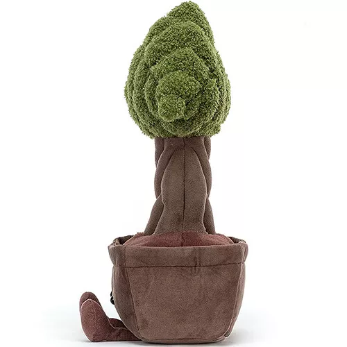 ‘Amuseable Bonsai Tree’ van het Engelse merk Jellycat is een groen knuffelboompje uit de Amuseables serie. Met de vertederende glimlach, corduroy beentjes en zwarte kraaloogjes is het haast onmogelijk om niet verliefd te worden op deze feng shui-vriend. Uit de bruine, pluizige aarde prijkt een kronkelige, suède stam en een pluizige wolk van bladeren.