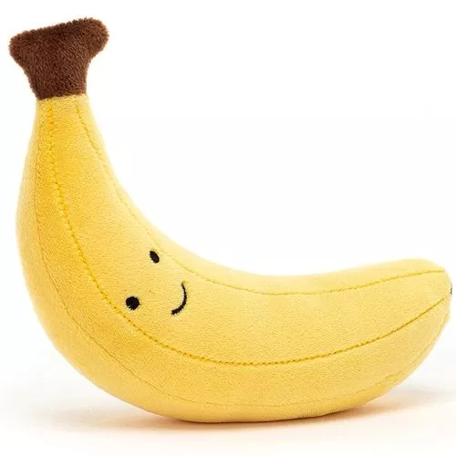 ‘Fabulous Fruit Banana’ van het Engelse merk Jellycat is een innemend banaantje. Knuffelfruit in een fluweelzachte schil met een vriendelijke geborduurd gezichtje: bijna om op te eten. Een heerlijk knuffeltje om overal mee naartoe te nemen en altijd te knuffelen.