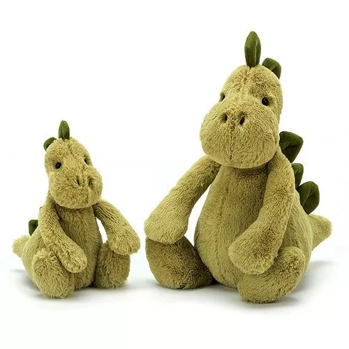 Kleine Bashful Dino van het Engelse merk Jellycat heeft vriendelijke kraalogen en de zachtste stekels. Een beste, prehistorisch maatje en knuffelvriend.