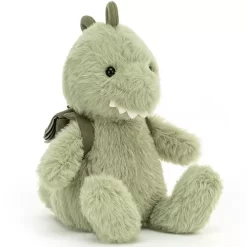 Deze kleine pluche dino ‘Backpack Dino’ van het Engelse merk Jellycat heeft een eigen rugzakje en is klaar om op stap te gaan.
