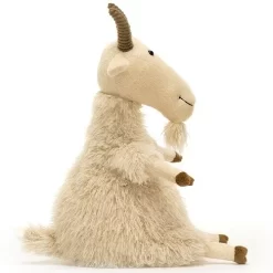 ‘Ginny Goat’ van het Engelse merk Jellycat is een speelse geitenknuffel met een ruige, warme vacht – heerlijk om te knuffelen. Dit grappige dierenvriendje heeft hoorntjes van corduroy, een heuse sik en ronde kraaloogjes.