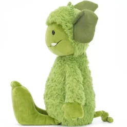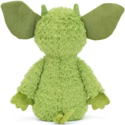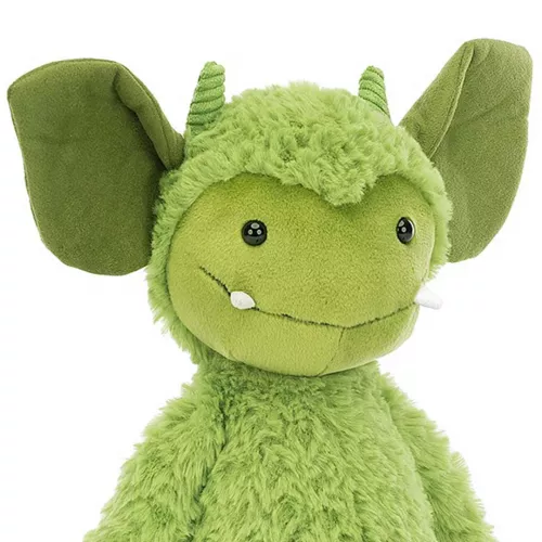 Van dit knuffelmonster mogen er wel honderd onder het bed liggen! De goedlachse ‘Grizzo Gremlin’ van het Engelse merk Jellycat is een vriendelijk knuffelmonster. De appelgroene knuffelgremlin heeft een vlokkerige vacht, twee grote, zwarte kraalogen, kleine hoorntjes en suède hoektanden.