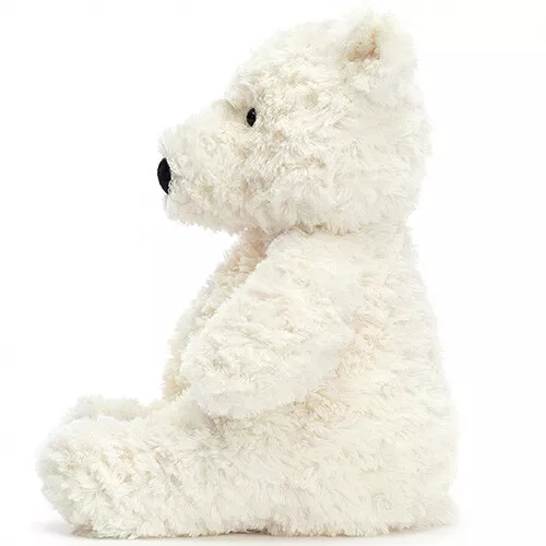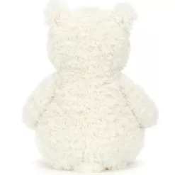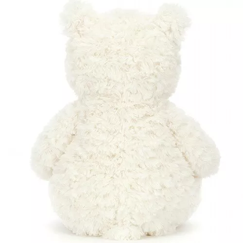De vriendelijke snuit van deze zachte ijsbeer ‘Edmund Cream Bear’ van het Engelse merk Jellycat steelt ieders hart. De charmante knuffelbeer heeft ronde oren, een dropzwart neusje van imitatiesuède en een zachte pluche vacht.