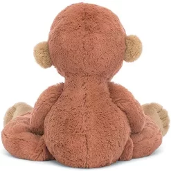 Aan de onderzijde is de knuffelorang-oetan gevuld met korreltjes, waardoor hij zelfstandig kan zitten. De knuffel is makkelijk vast te pakken aan zijn slungelige armen of staart en is geschikt voor kinderen vanaf de geboorte.