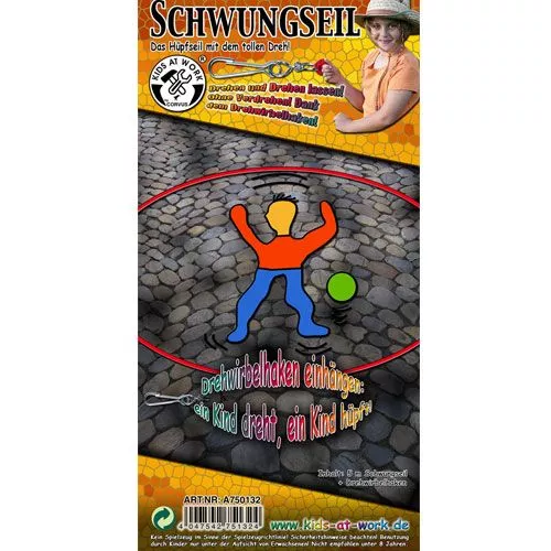 Deze springtouwset uit de serie Kids-at-Work van het Duitse speelgoedmerk Corvus maakt samen touwtje springen makkelijker dan ooit. Met de roterende haak bevestig je het ene uiteinde van het springtouw op een stevige plek. Met het andere uiteinde zwiept één kind het touw rond terwijl de anderen er overheen springen. De karabijnhaak met draaimechanisme zorgt ervoor dat het touw nooit verdraaid raakt, zodat je kunt blijven springen.