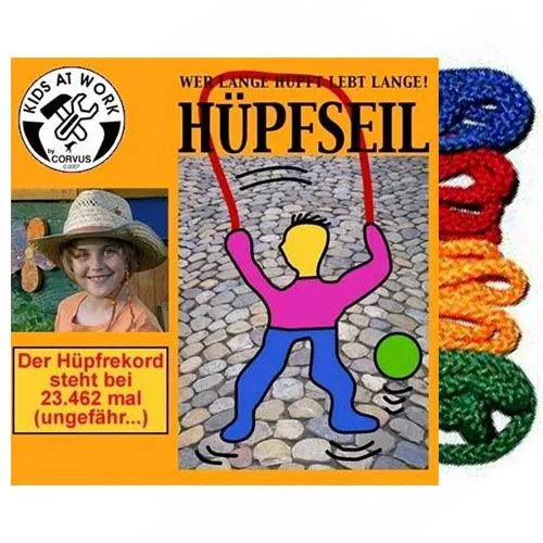 Een robuust springtouw uit de serie Kids at Work van het Duitse speelgoedmerk Corvus in een heldere kleur.