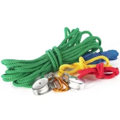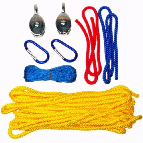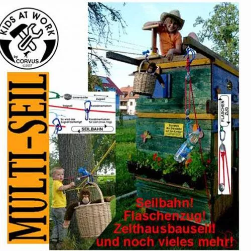 Bij avonturen buiten of in een boomhut kan je nodig hebben: een takel! Dat kan met deze multifunctionele takelbaan met twee katrollen uit de serie Kids-at-Work van het Duitse speelgoedmerk Corvus. Spelenderwijs wordt met het per touw vervoeren van speelgoed en andere spulletjes geoefend.