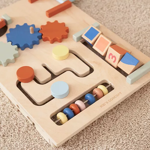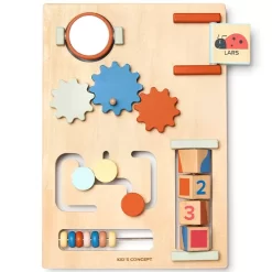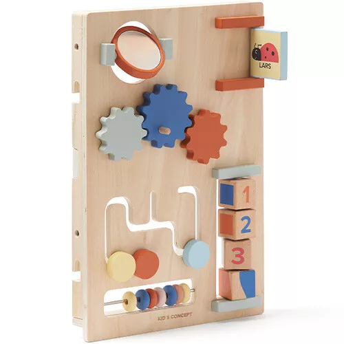 Kinderen gaan op ontdekking en oefenen zelfstandig de eerste stapjes met deze houten loopwagen en activiteitentrolley in één ‘Edvin’ van het Zweedse merk Kid’s Concept. Voor entertainment onderweg heeft de speelgoedwagen in neutrale kleuren zes ingebouwde speeltjes; een telraam, draaiblokken, spiegel, doolhof, tandwielen en een luikje om te openen. De zijkant van de loopwagen is voorzien van een vormenstoof.