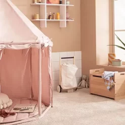 Een rond speelhuis ‘Pavillion Tent Light Pink’ van het Zweedse merk Kids Concept om in te spelen, te lezen of knus in weg te kruipen. Met deze canvas speelhut in een lichtroze kleur kunnen kinderen hun fantasie de vrije loop laten: verzin toneelstukjes, voer circusacts op of gebruik het speelpaviljoen als uitvalsbasis voor grote en kleine avonturen.