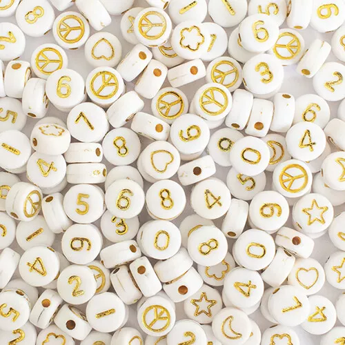 – de ronde kralen hebben een witte kleur, de symbolen en cijfers zijn goud
