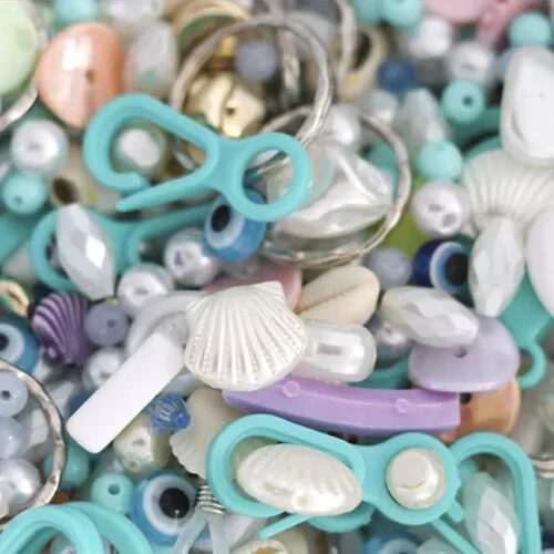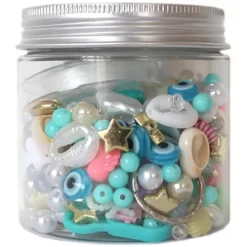 Maak kleurrijke sieraden en accessoires met de ‘Sirène’ kralen van het Franse merk La Petite Épicerie. De knutselset bestaat uit kralen in zeeblauwe en -groene tinten, parels en schelpen.
