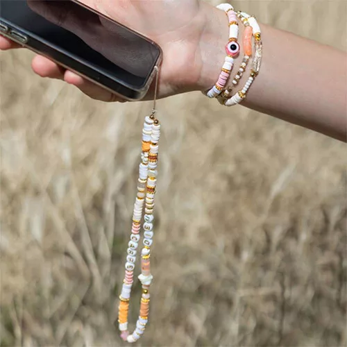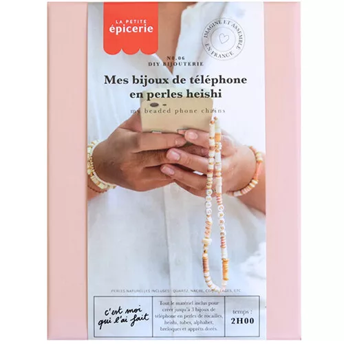 De telefoon altijd bij de hand met een zelfgemaakt telefoonkoord. Samengesteld uit deze trendy kralenset ‘Mes bijoux de téléphone en perles heishi’ van het Franse merk La Petite Épicerie uit de DIY Bijouterie collectie.