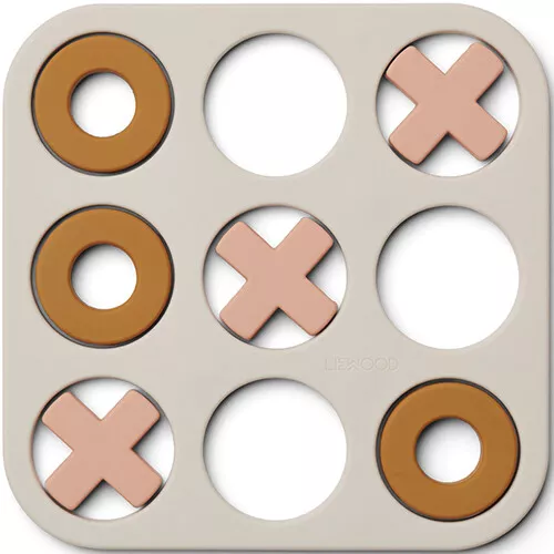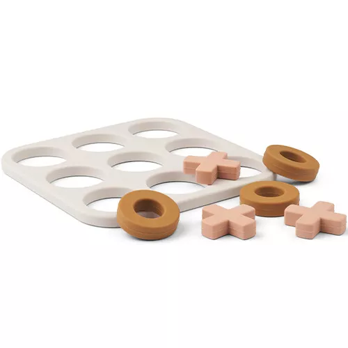 Het klassieke Boter-kaas-en-eieren-spel in siliconen uitvoering ‘Kelsey Tic Tac Toe – Sandy Multi Mix’ van het Deense merk Liewood.
