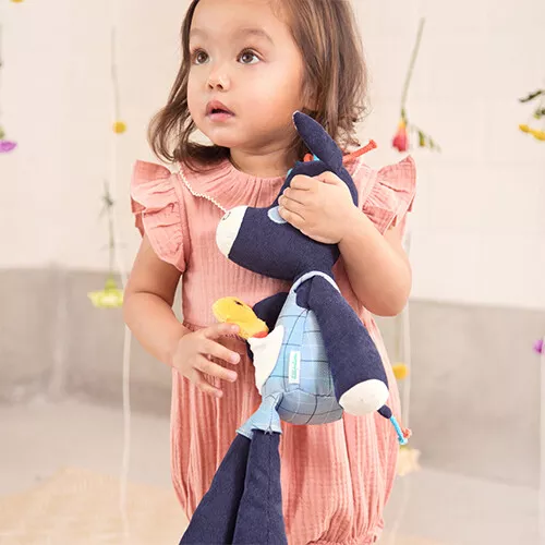Deze hartveroverende knuffelezel Ignace van het Belgische merk Lilliputiens weet nieuwsgierige baby’s te vermaken.