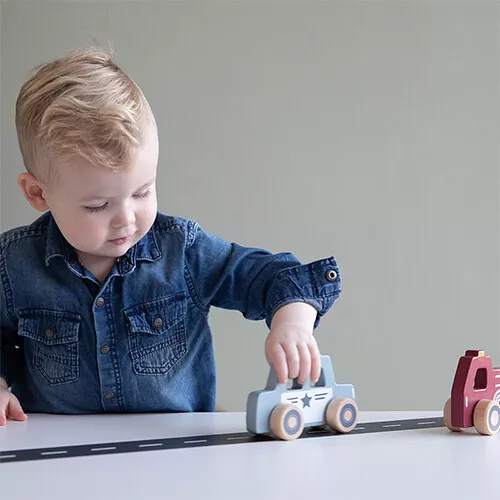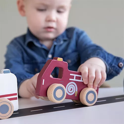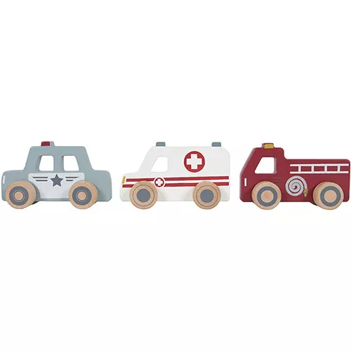Voor jonge helden drie houten hulpverleningsauto’s van het Nederlandse merk Little Dutch. De brandweer, politie en ambulance komen er vliegensvlug aan en bieden hulp waar het nodig is.
