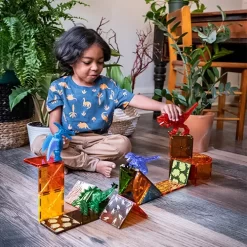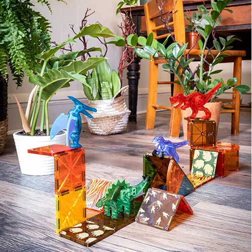 Ga terug in de tijd met uitbarstingen van vulkanen, gesmolten lava en de woeste dinosaurussen met het speelgoed ‘Dino World – 40 piece set’ van Magna-Tiles en ontdek hun verschillende leefgebieden. De magnetische vormen van het speelgoed blijven stevig plakken. De levendige kleuren en patronen brengen het landschap tot leven terwijl de kinderen hun eigen avonturen naspelen met vulkaanuitbarstingen, gesmolten lava en beweegbare, magnetische dinosaurussen.