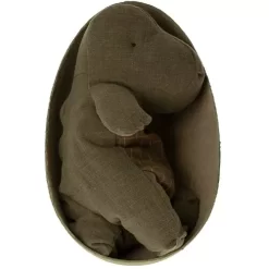 Deze donkergroene dinosaurusknuffel ‘Gantosaurus in egg, Medium – Forrest Green’ van het Deense merk Maileg is klaar om uit zijn schulp te kruipen en heerlijk te knuffelen met zijn mensenvriendje.