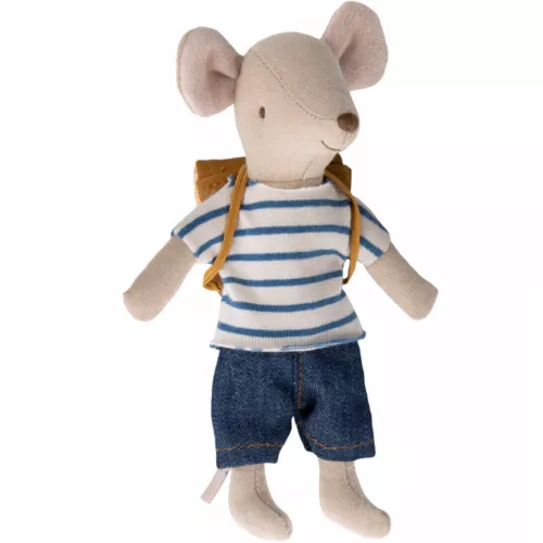 Poppenkleding en een rugzakje van het Deense merk Maileg voor de grote broer, maar waar ook grote zus knuffelmuis zich graag in kleedt.