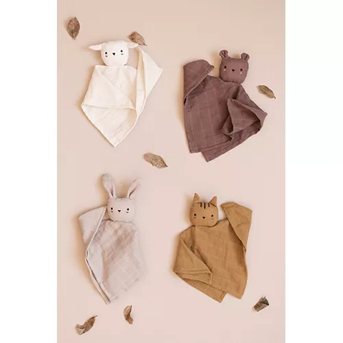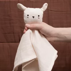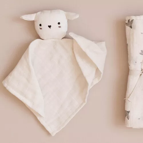 Een knuffeldoek ‘Cuddle Cloth, Lamb’ van het Franse merk Main Sauvage om mee te tutten en te frutten. Het vriendelijke schapenkopje met geborduurd snuitje voelt prettig en vertrouwd. Een heerlijk eerste knuffeltje voor kleine dromers.
