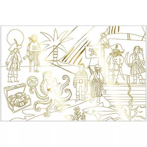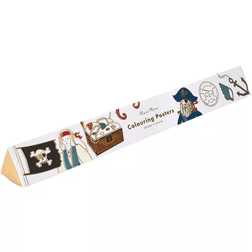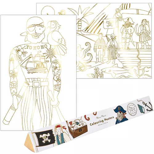 Twee grote kleurplaten ‘Pirate coloring posters’ van het Engelse merk Meri Meri met glanzend folie voor alle creatieve liefhebbers van piraten. Sommige stukjes zijn al ingekleurd met glimmend folie, maar het is aan de kleine kunstenaars om de posters vol stoere piraten en onderwaterdieren verder leven in te blazen!