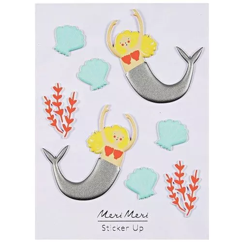 Deze ‘Mermaid Puffy Stickers’ van het Engelse merk Meri Meri voelen verrassend zacht aan. Met zachte pastel tinten en neon accenten geven ze een sprookjesachtige touch aan een agenda, notebook, dagboek, poster of om een iPad te pimpen.