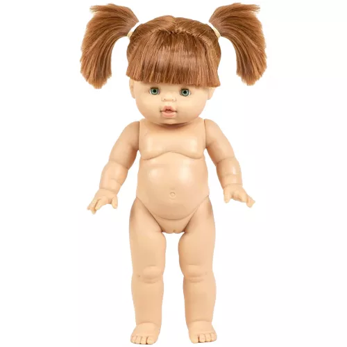 Stapop ‘Gabriella Nue’ van het Franse merk Minikane, heeft een mollig, anatomisch correct meisjeslijfje, koperrood haar en groene ogen. Haar sproetjes maken haar extra vertederend. Gabriella heeft nog een rond babybuikje, maar zet al haar eerste stapjes met rechte beentjes.
