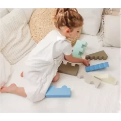 De 11 verschillende lichtgewicht blokken passen als een puzzel in elkaar. Dat maakt spelen met deze foam blokken uitdagend en biedt allerlei mogelijkheden voor vorm en constructie.