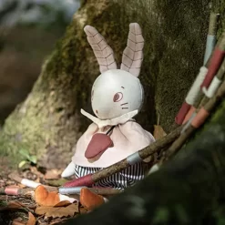Dit muzikale knuffelkonijn uit de collectie ‘Après la Pluie’ van het Franse merk Moulin Roty brengt kindjes naar dromenland. Trek aan haar staart en de konijnenknuffel neuriet zachte, Japanse melodietjes.