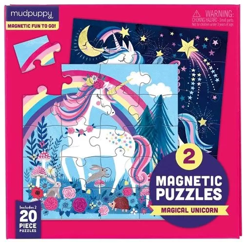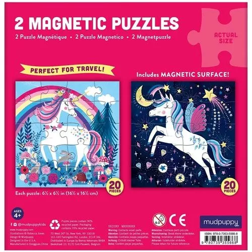 Met de ‘2 Magnetic Puzzles – Magical Unicorn’ van het Amerikaanse merk Mudpuppy kunnen kinderen op ieder moment van de dag en waar dan ook een uitdagende legpuzzel maken. De stevige in- en uitklapbare map bevat twee kinderpuzzels van elk 20 puzzelstukjes, die aan het gemagnetiseerde portfolio blijven hangen, zodat er geen onderdelen wegglijden of kwijtraken.