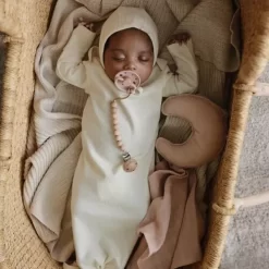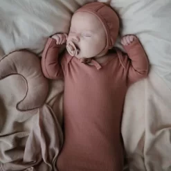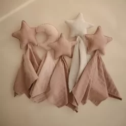 Een zacht mousseline knuffeldoekje ‘Lovey Blanket Moon – Blush’ van het Amerikaanse merk Mushie om dichtbij te houden voor een knus en veilig gevoel.
